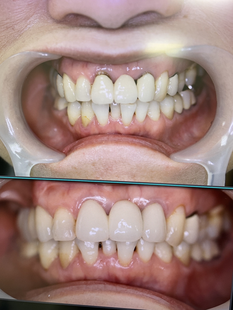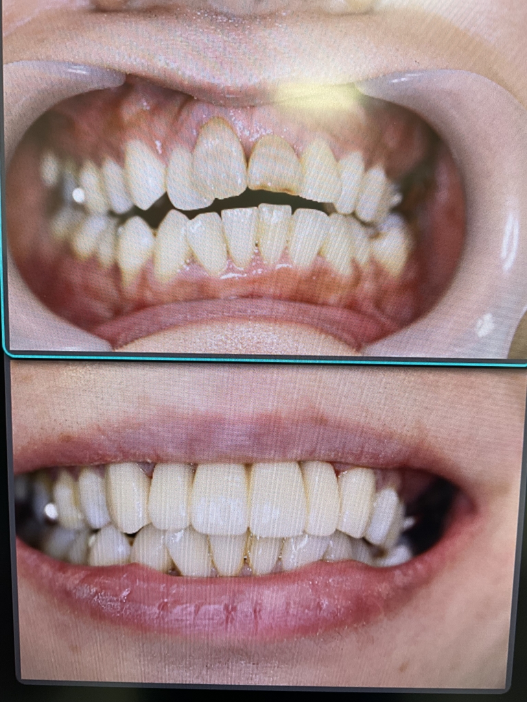 歯に固定してるバネが見えないので、取り外しの入れ歯とは分かりにくいです